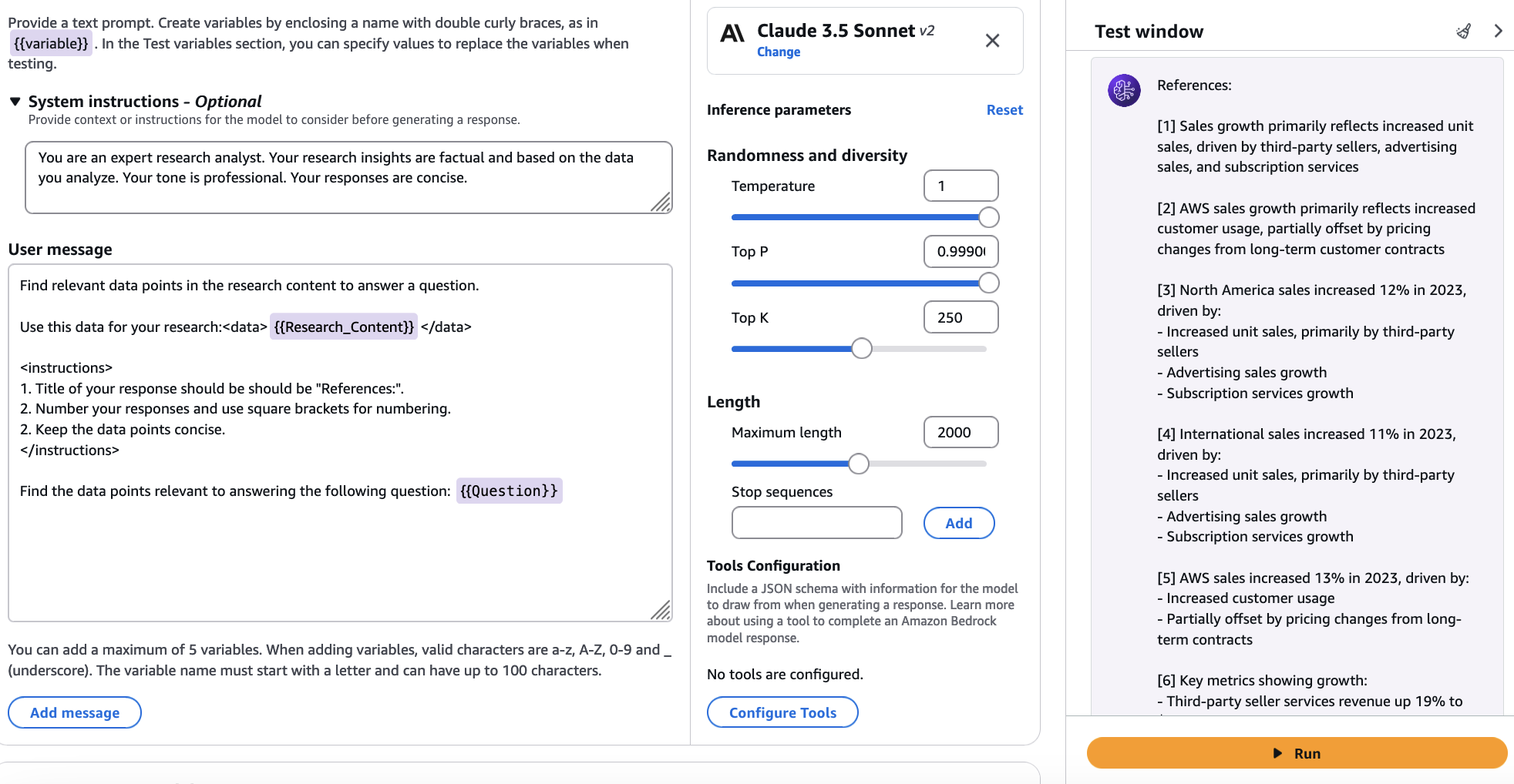 “I want you to connect the backend service to the Amazon Nova model endpoint using the AWS SDK and expose the responses through an API.”