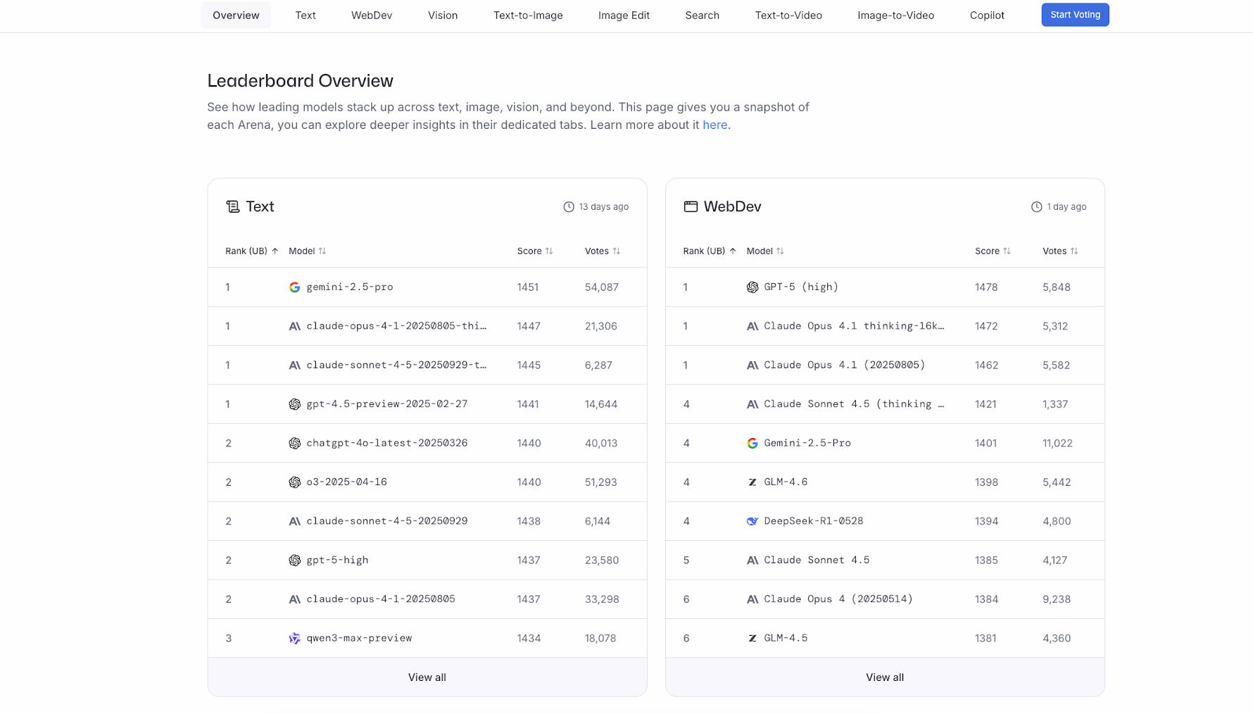 For a live, crowdsourced comparison of these models, you can check the rankings on the LM Arena leaderboard.