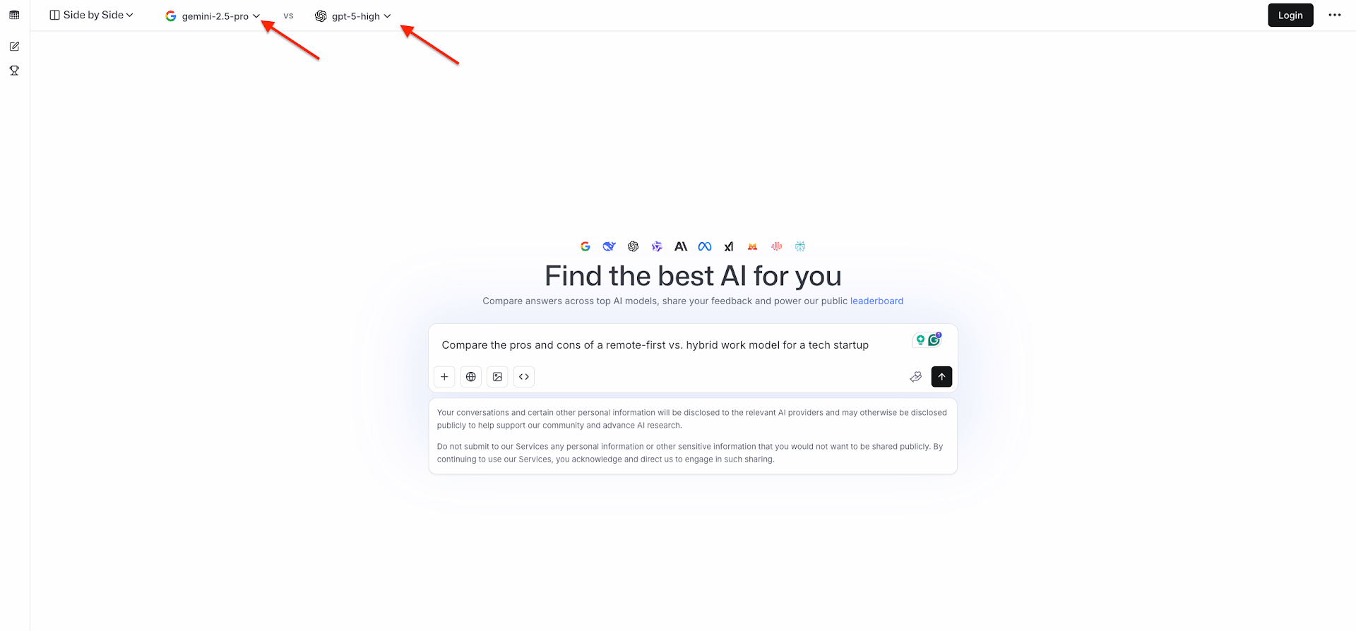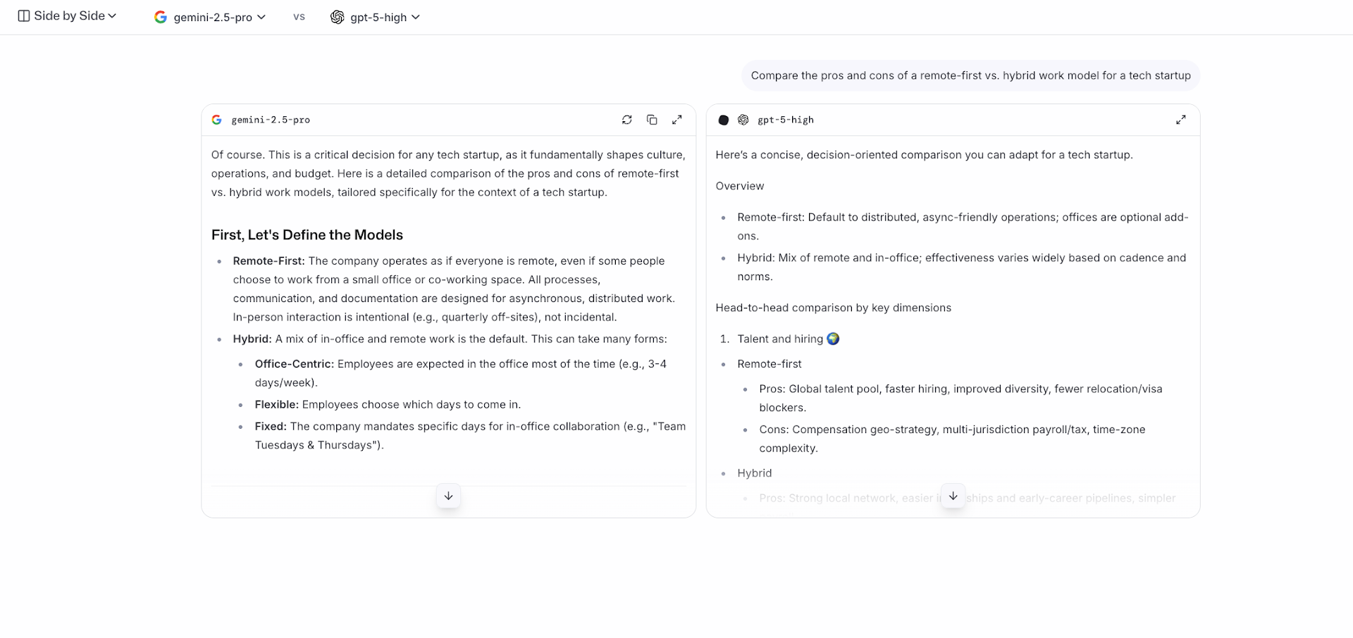 Instead of using one tool, we used a third-party platform, LM Arena, to understand how the models stack up in a blind test.
