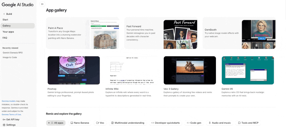 Google AI Studio offers helpful guides, examples, and a “Prompt Gallery” to get you started.