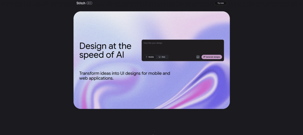 - Image-to-UI Conversion: Upload sketches, wireframes, or screenshots, and Stitch will interpret them to create editable UI designs.