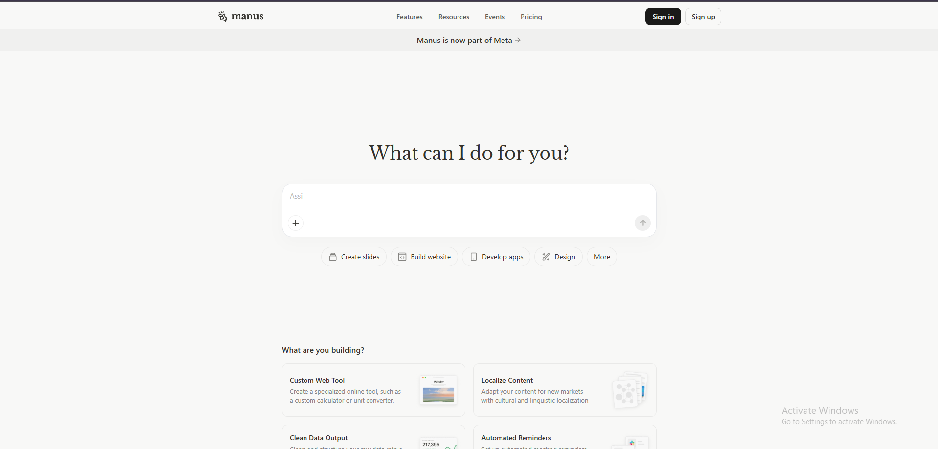 Manus currently operates as a standalone web platform. Roadmap updates reference future connections with document tools, internal knowledge bases, and workflow platforms used by startups and remote teams.